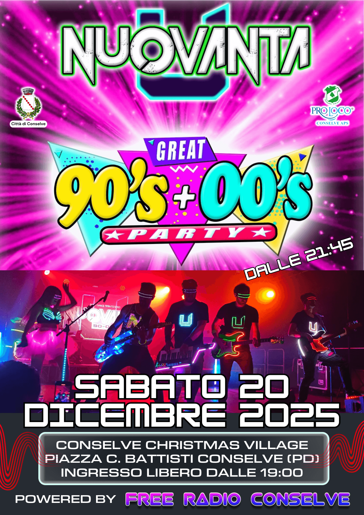 SAB 20-12-25 - NuOVANTA - la Band ripercorre la musica pop e dance degli anni 90 e 2000 con un medley tutto dal vivo, tutto da ascoltare, vedere e ballare.