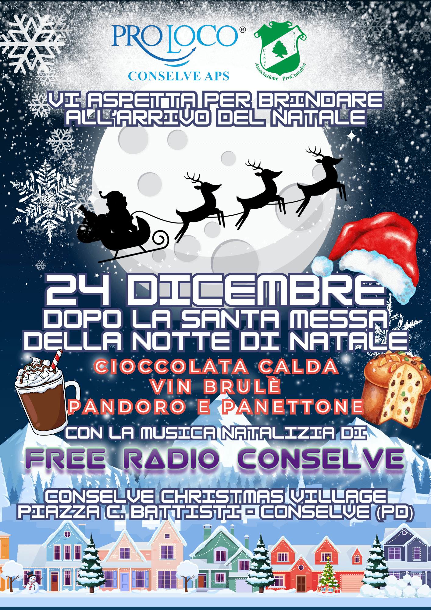 MER 24-12-25 - Per tutta la sera musiche Natalizie di sottofondo by Free Radio Conselve e a mezzanotte cioccolata calda, vin brulè, pandoro e panettone.